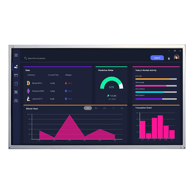 产品应用 ♦室外广告牌:户外公共显示、商业广告、户外数字标牌(商场/广场/机场)、公交站台信息屏、楼宇广告机、充电桩广告屏、公共信息、智慧城市信息发布终端、社区公告显示屏、应急广播信息屏、高亮LCD液晶屏用于显示各种实时广告,时间表,飞行信息,实时新闻,新闻和公告。 ♦医疗设备:医疗诊断显示设备、手术室监护仪显示屏、超声诊断设备显示屏、内窥镜显示系统、数字化X光机、医疗辅助显示器、智能药房取药屏、医疗问诊终端、远程会诊显示设备等。 ♦交通运输:车载显示、工程车辆、挖掘机、起重机驾驶舱内控制屏(防震、宽温设计),特种车辆、消防车、军用车指挥终端(阳光下可视),商用车、公交车电子路牌、出租车顶广告屏,航海与航空、船舶导航屏、飞机辅助仪表(防眩光涂层)。 ♦工业监控和控制:数控机床操作面板(CNC系统)、自动化生产线监控终端、工业机器人交互界面、AGV小车控制系统、DCS系统显示终端、SCADA监控屏幕、仪器仪表读数显示、质量检测设备显示。 | |